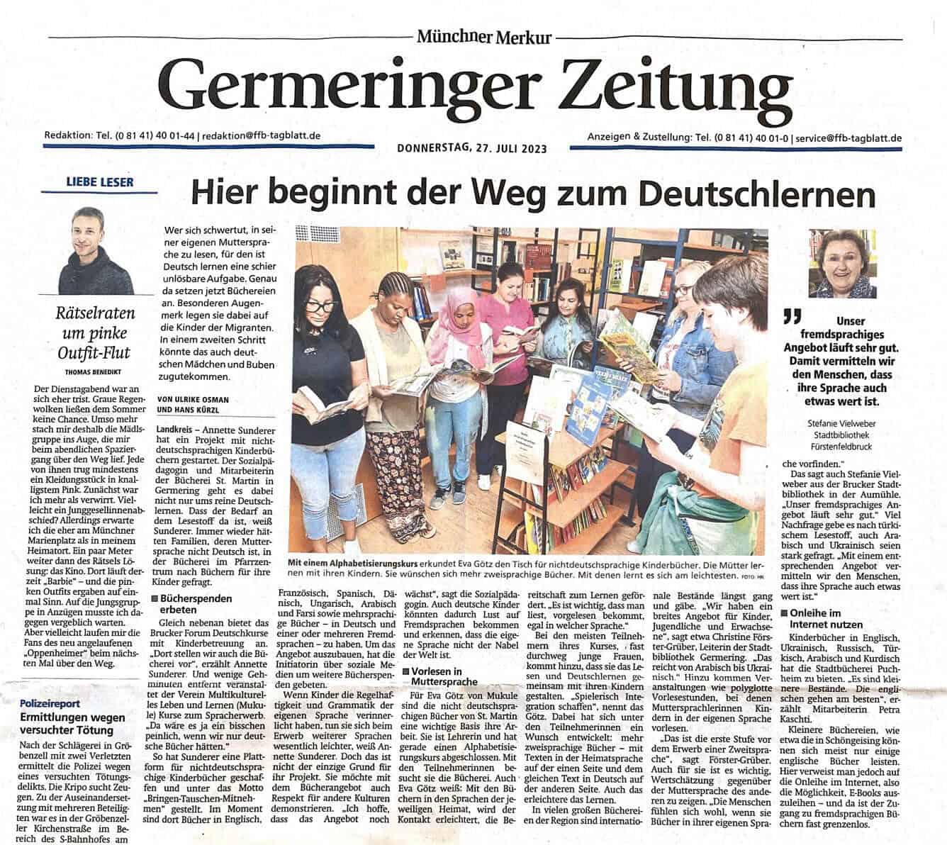 Am 24. Juli hat ein Alphakurs die Germeringer Bücherei St. Martin besucht.