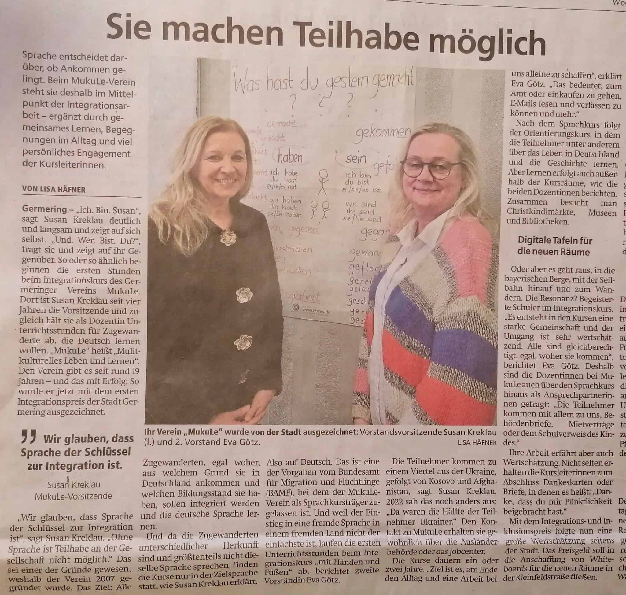 MukuLe hilft seitdem vielen Zugewanderten im Landkreis Fürstenfeldbruck, in der deutschen Sprache und Kultur Fuß zu fassen.